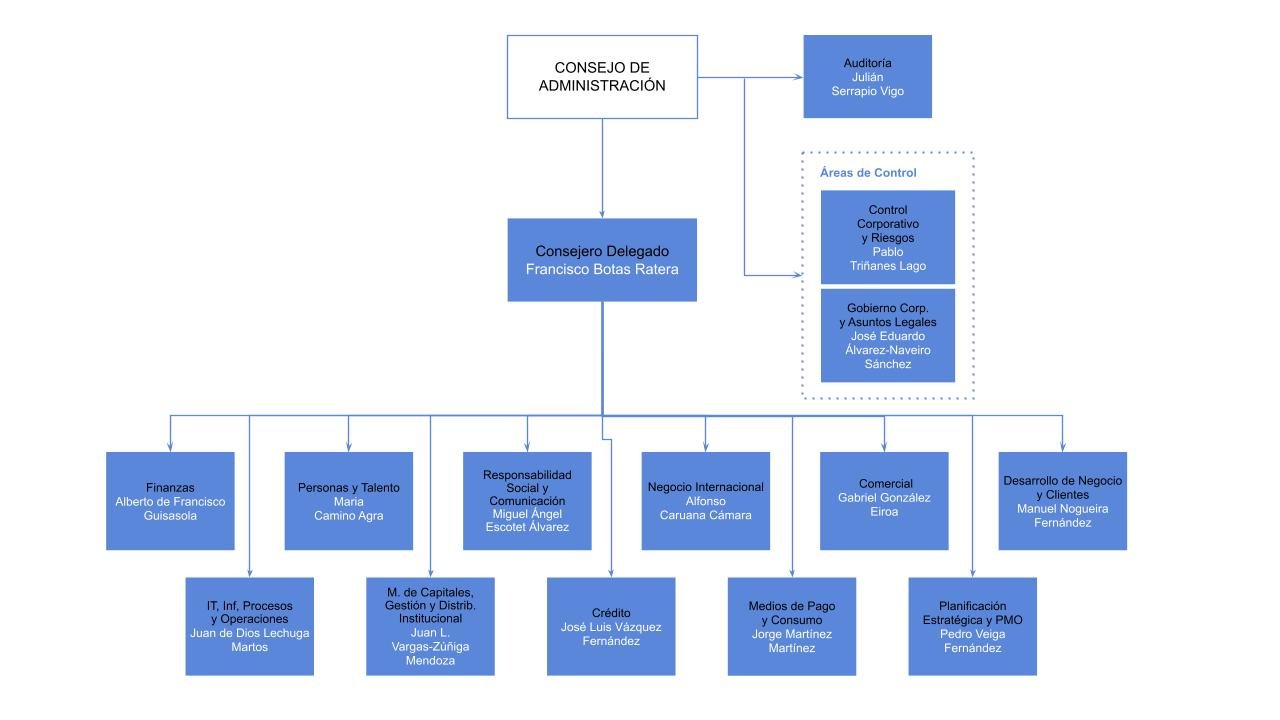 Forma parte de la segunda línea de defensa del banco y tiene por funciones principales el asesoramiento jurídico y fiscal de la entidad, la Secretaría del Consejo de Administración y de sus Comisiones asegurando la aplicación y actualización del Sistema de Gobierno Corporativo del banco conforme a las mejores prácticas sectoriales de gobernanza, así como la función de cumplimiento normativo, incluida la prevención del blanqueo de capitales y de la financiación del terrorismo y el Servicio de Atención al Cliente.