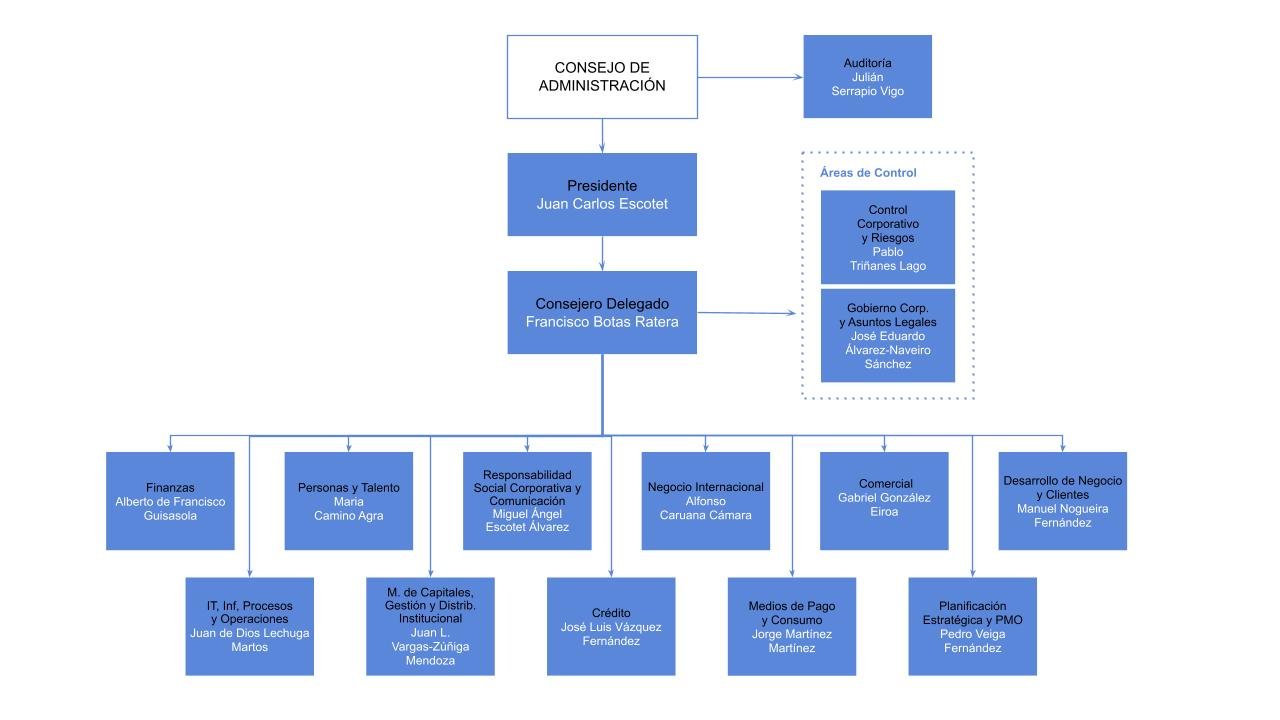 Con una clara visión cliente y atendiendo a criterios de innovación, calidad en la gestión y trabajando bajo formatos de metodologías “ágiles”, desde esta área, se diseña, desarrolla e implantan las estrategias para el progreso del negocio de Consumo y Medios de Pago, aprovechando las oportunidades del entorno o creándolas. Simultáneamente, coordina la dirección, planificación y control de la compañía financiera “ABANCA SERVICIOS FINANCIEROS EFC, S.A., que cuenta con una posición relevante en el mercado de la financiación al consumo en España. Asumen, por lo tanto, la responsabilidad de cumplimiento de las normativas legales y del cumplimiento del plan de negocio con un claro impulso de la transformación digital. Con esta finalidad diseñan los productos, servicios, acciones comerciales y campañas necesarias para satisfacer las necesidades de nuestros clientes y situarnos entre las mejores prácticas del mercado. Representan al Banco en distintas Entidades: Visa, MasterCard, procesadores o licenciatarias; y establecen con todos ellos sinergias que beneficien a las Entidades y clientes.